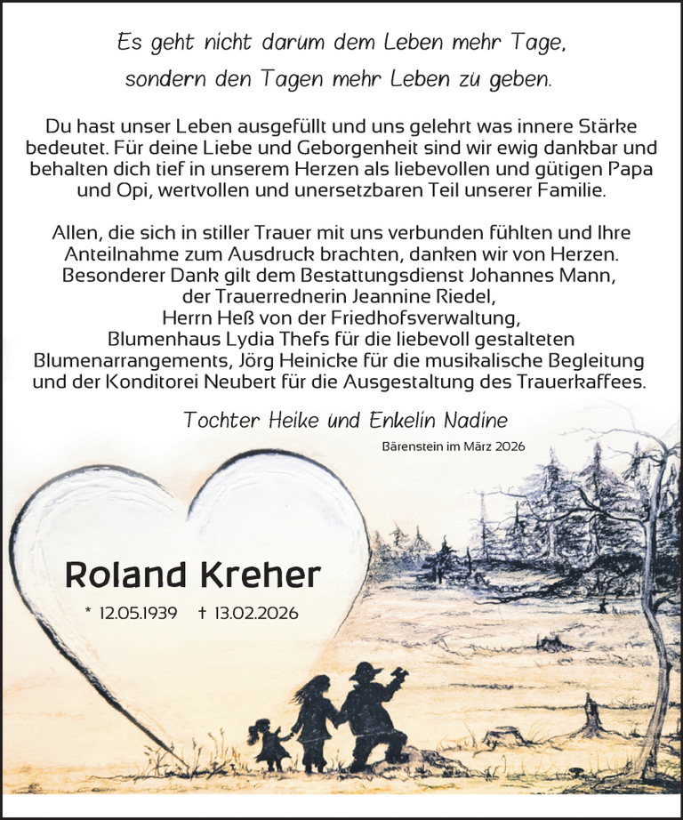 wir möchten uns auch im Namen meines Vaters und aller Angehörigen ganz herzlich für Ihre Begleitung bedanken.